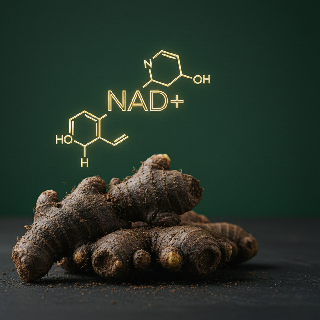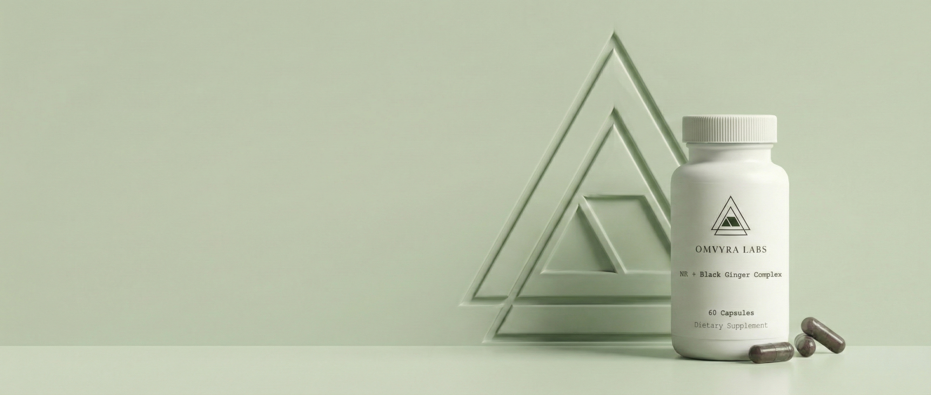 Omvyra Labs doesn't just replenish the fuel. We use Black Ginger to restore the signal, ensuring your cells can actually convert that NAD into the steady, usable energy you feel.