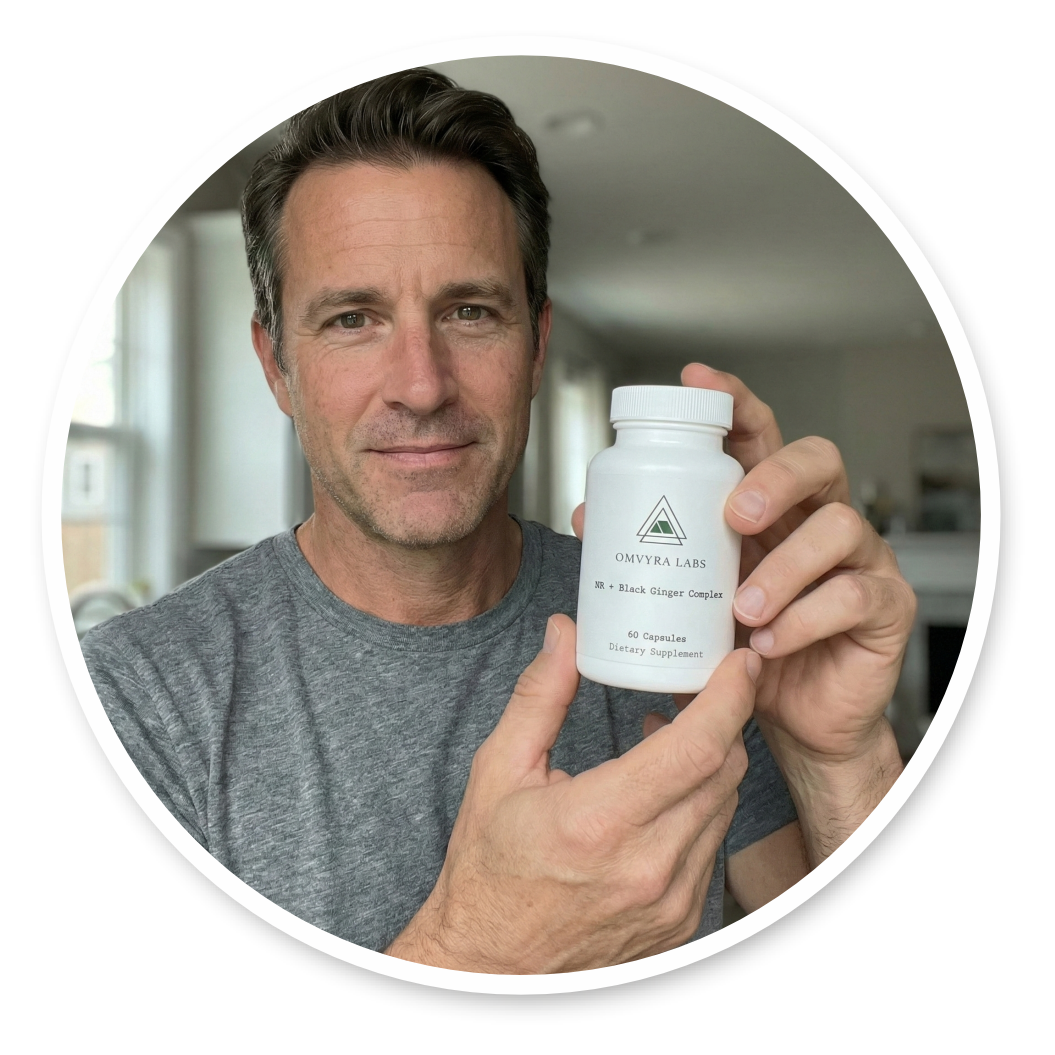 Most supplements focus only on raising NAD levels. Omvyra Labs combines high-purity NR with Black Ginger to support both NAD availability and the body’s ability to use that energy.